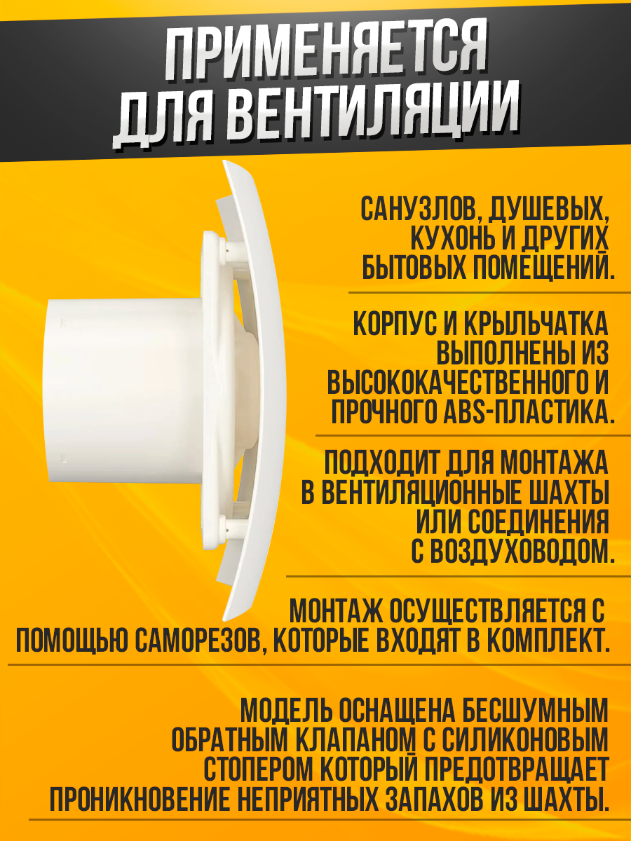 Вентилятор вытяжной осевой DICITI BREEZE 4C Ivory, с обратным клапаном, с двигателем на шарикоподшипниках, D 100 мм, слоновая кость