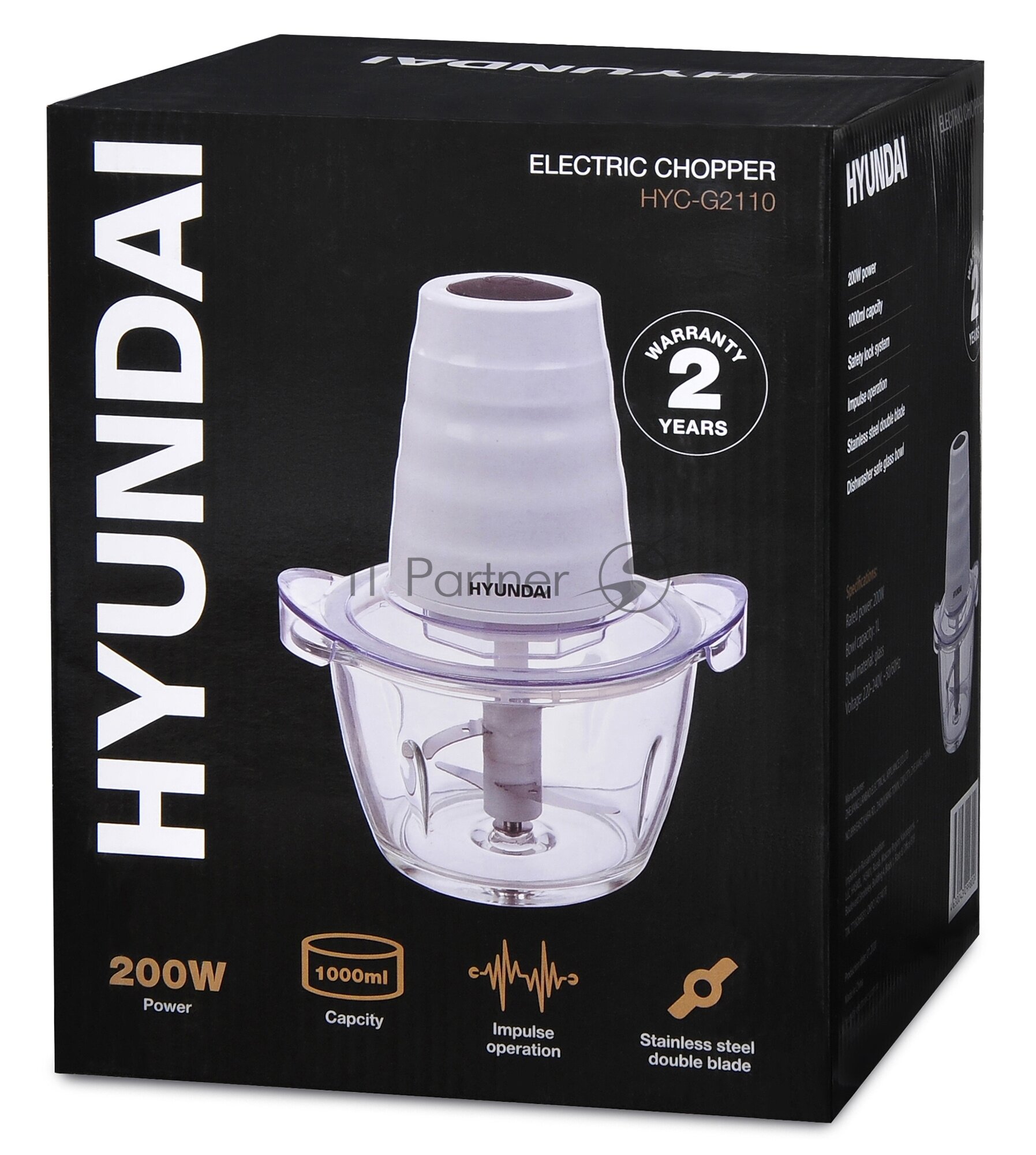 Измельчитель электрический HYC-G2110 1л. 200Вт бел. | код 1195142 | HYUNDAI (1 шт.)