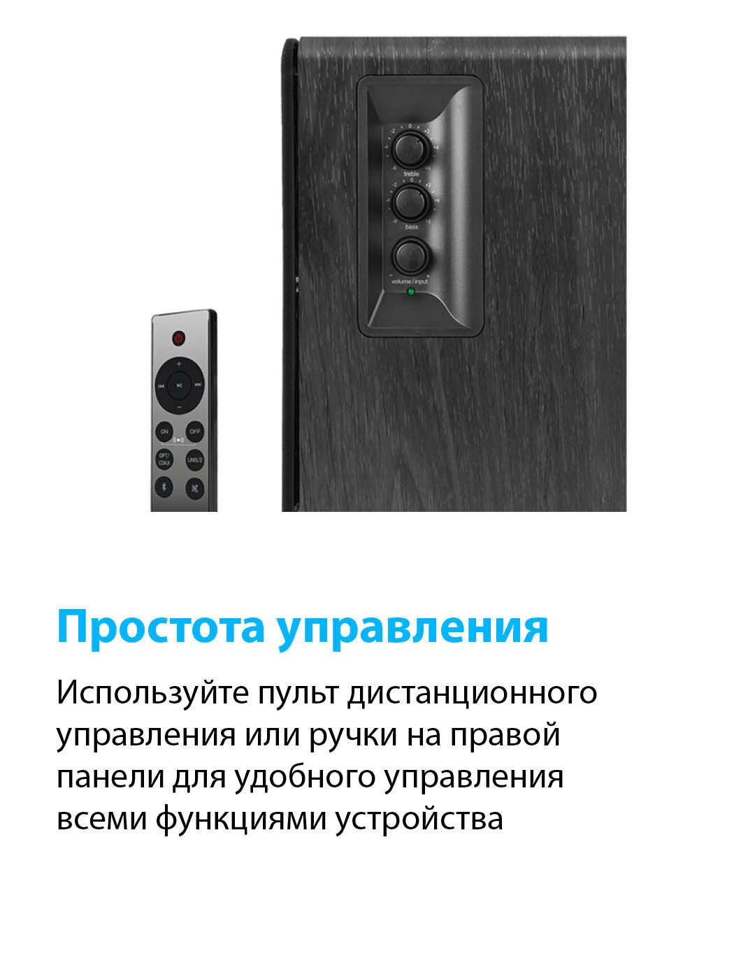 Колонки Edifier R1280DBs Brown мощность 42 Вт, Bluetooth v5.0, пульт - коричневое дерево и черный