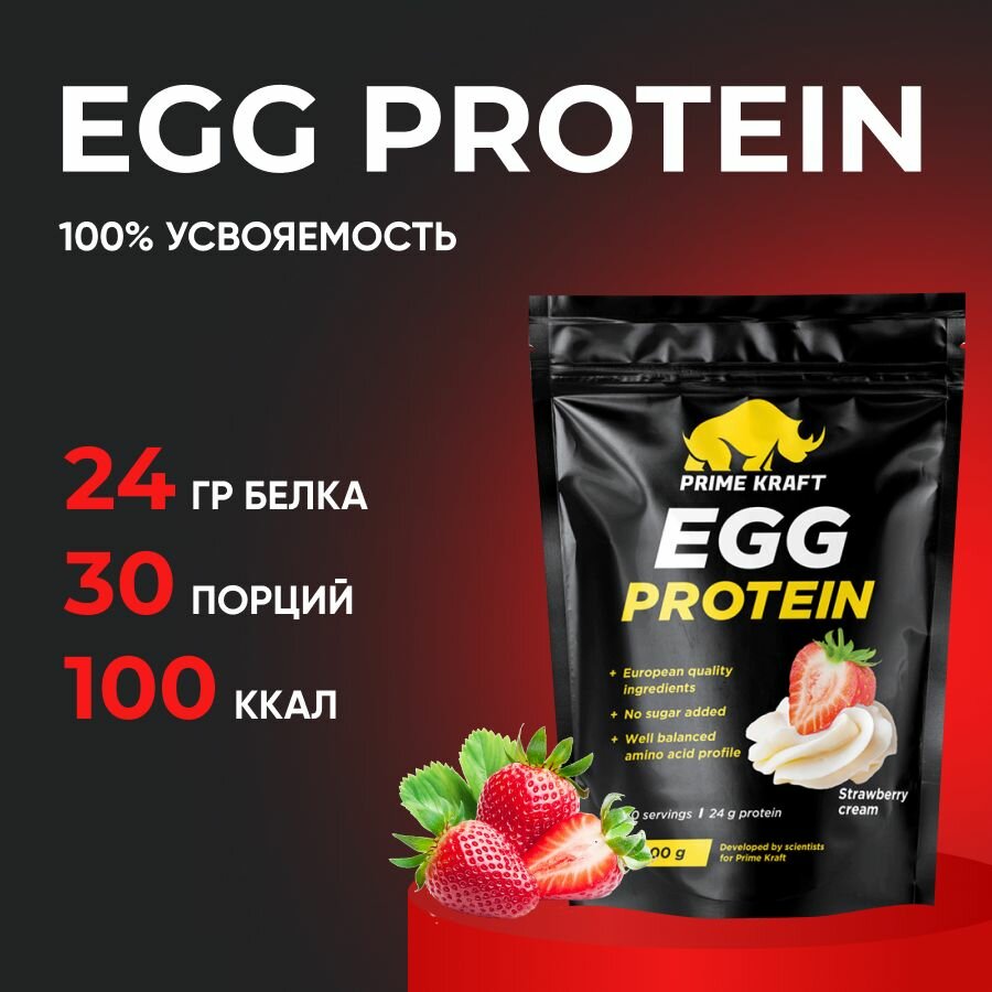 Протеин яичный Prime Kraft Egg Protein (900 г) Клубника со сливками