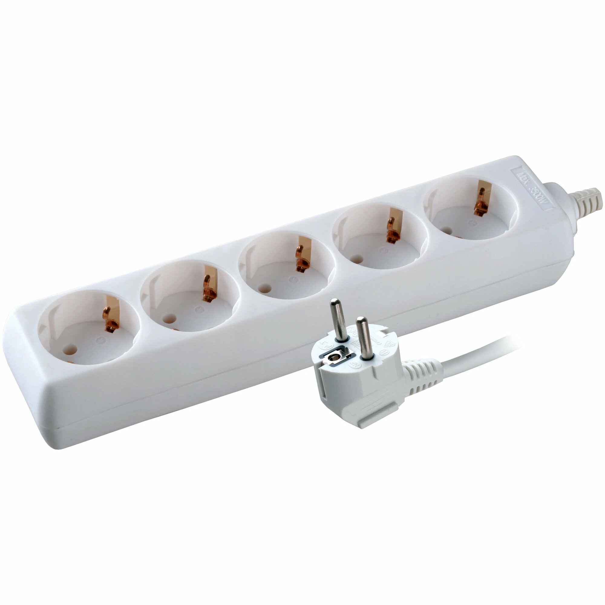 Удлинитель бытовой Volsten 9319, с заземлением, 5 розеток, 3 м, 10 А, 2200 Вт, белый