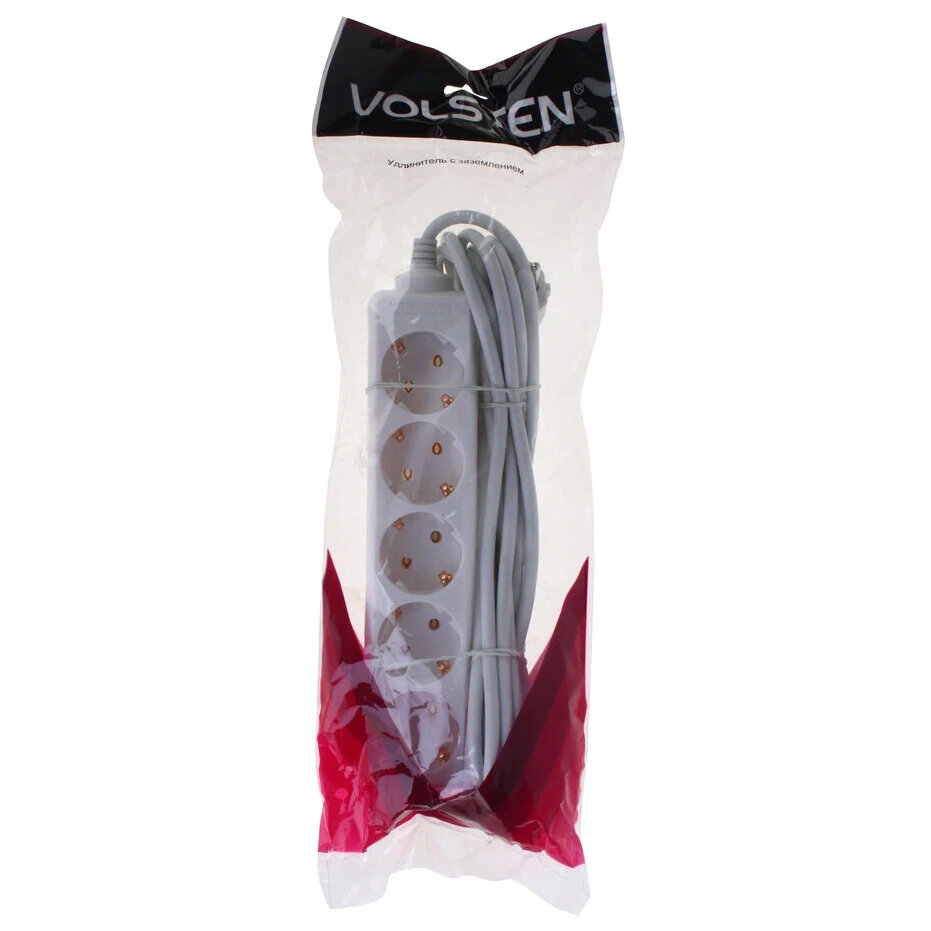 Электрический удлинитель Volsten 9320 бытовой, с заземлением, 5 розеток, 5 м, 10 А, 2200 Вт
