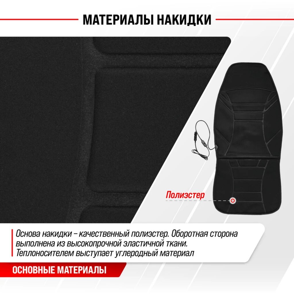 Купить Подогрев сидений со спинкой черный полиэстер 118х53 см, с регулятором (2 режима), S02201002