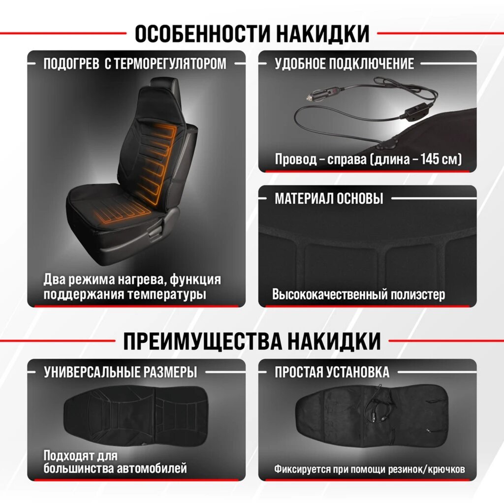 Накидка на сиденье с подогревом 12V с терморегулятором черная, SKYWAY S02201002 (1 шт.)