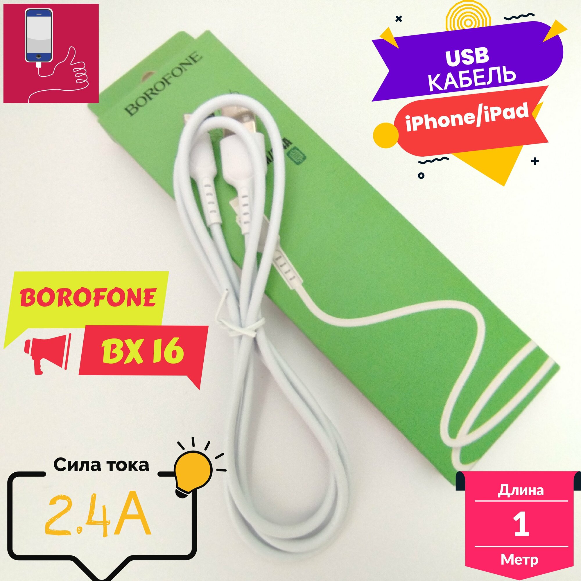 Кабель USB Borofone BX16 для Lightning, 2.4A, длина 1 метр, белый