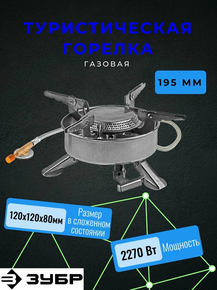 Туристическая газовая горелка Зубр эксперт диаметр 195 мм, мощность 2.2 кВт 68206