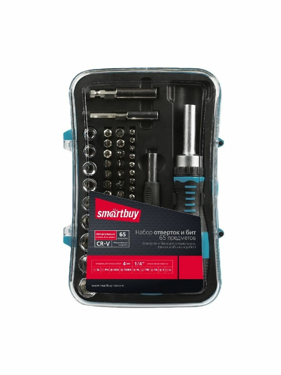 Smartbuy SBT-SCBS-65P1 Отвертки с набором бит (насадок), 65 предметов, 2 отвертки, 52 биты, .