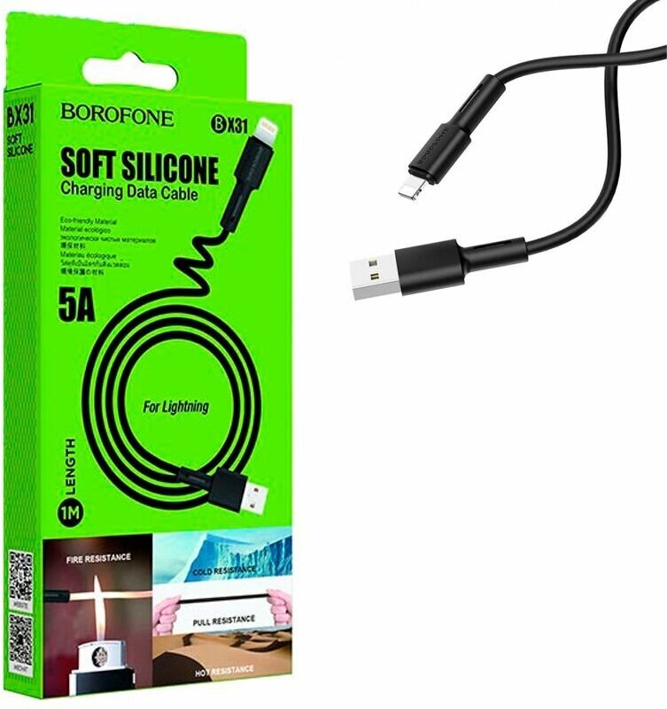 Силиконовый кабель для быстрой зарядки USB/Lightning Borofone BX31, черный