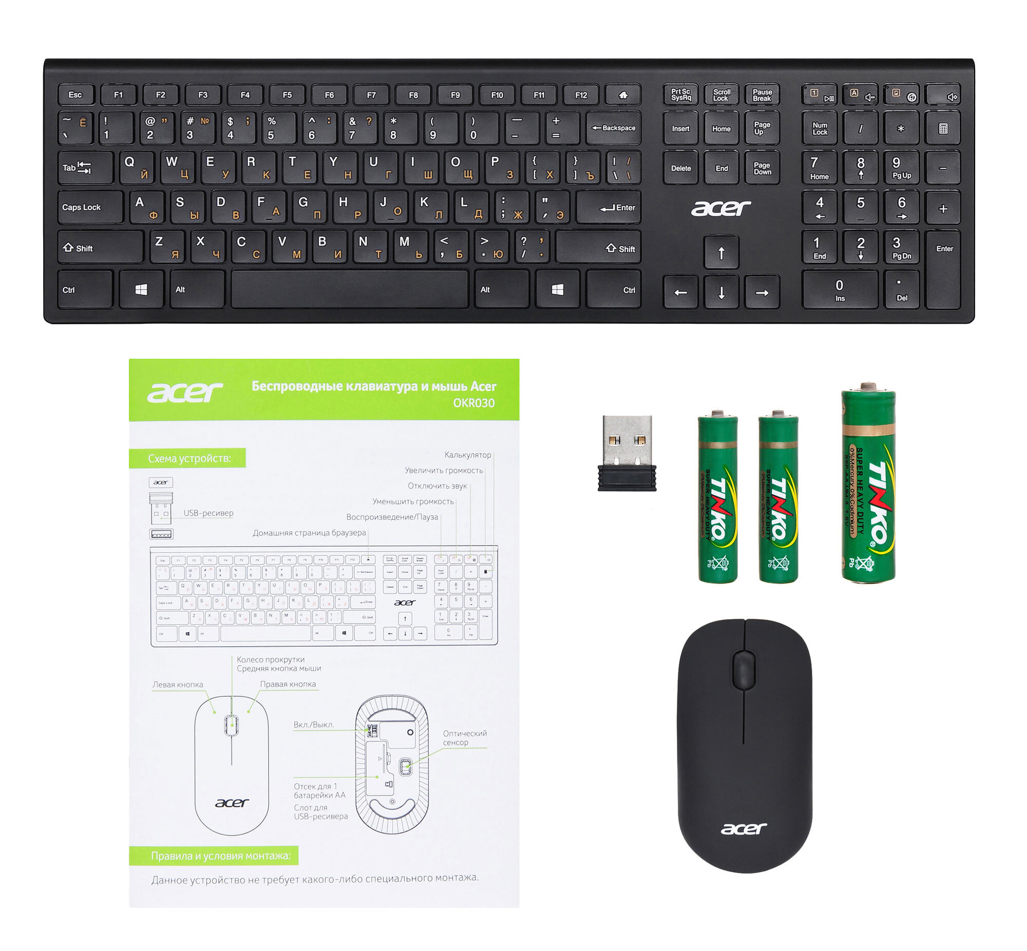 Купить Клавиатура + мышь Acer OKR030, беспроводная, USB, черный (ZL.KBDEE.005)