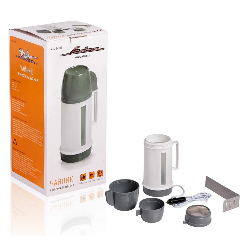 Чайник Автомобильный 24В Белый/Серый Пластик AIRLINE арт. ABK2402