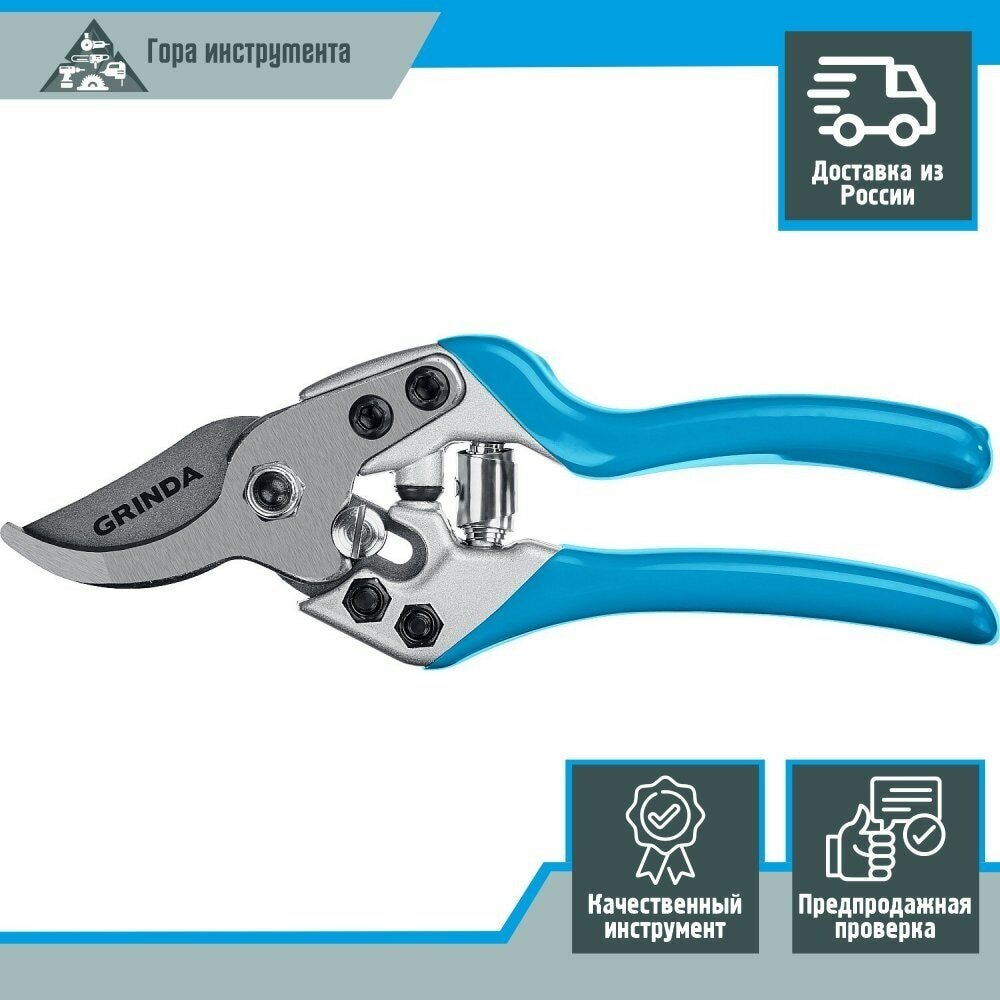 Купить GRINDA P-27, 190 мм, закаленая сталь, эргономичные алюминиевые рукоятки, виниловые накладки, плоскостной секатор, PROLine (423427)
