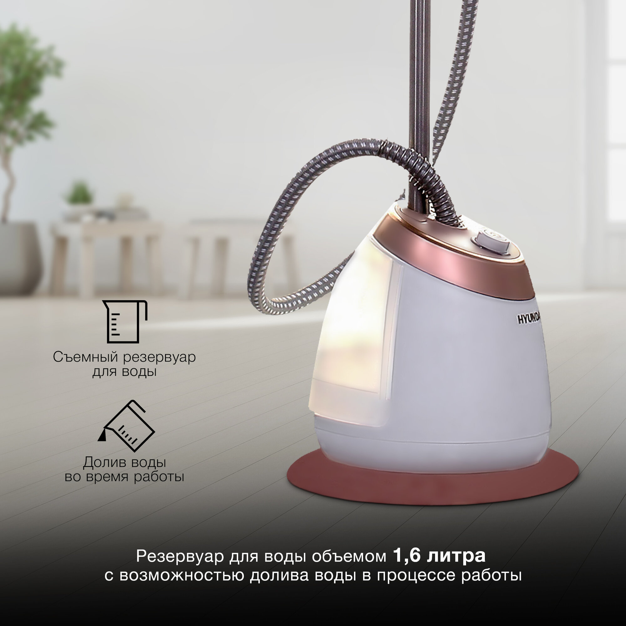 Отпариватель напольный HYUNDAI H-US02259, белый / золотистый