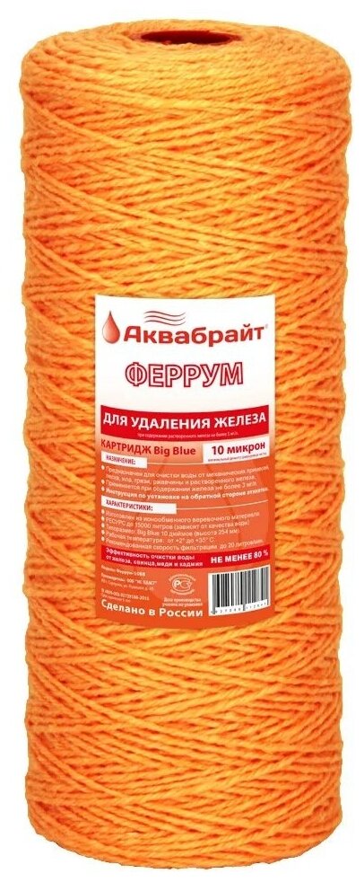 Феррум - 10ББ, Веревочный Картридж аквабрайт для удаления железа интересное: