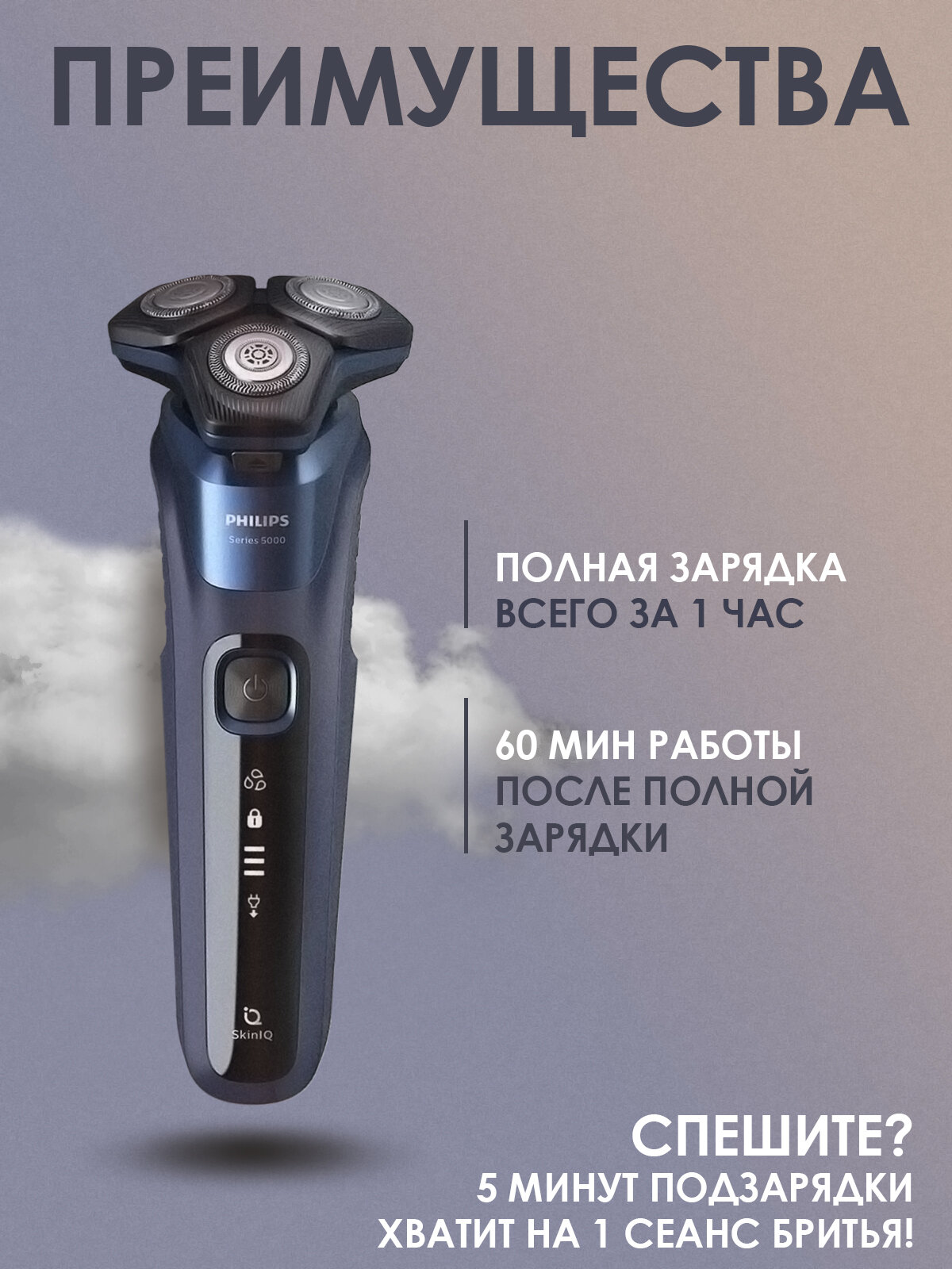 Электробритва Philips Series 5000 SkinIQ S5585/10, темно-синий