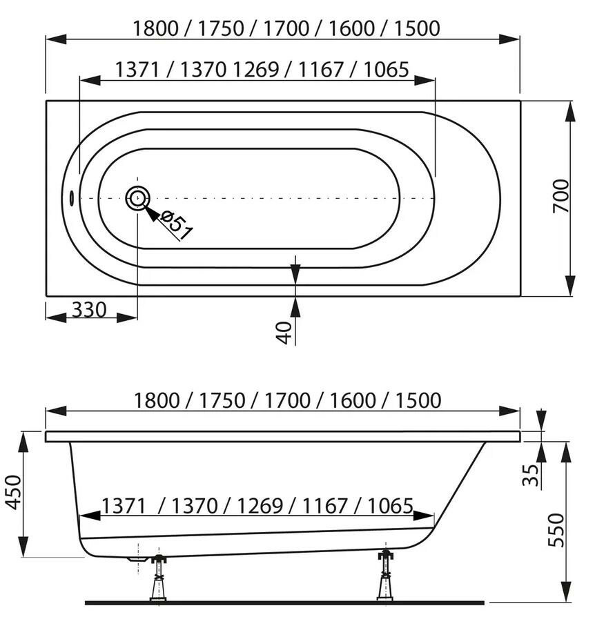 Ванна Vagnerplast Kasandra 175x70, акрил, глянцевое покрытие, белый (без каркаса)