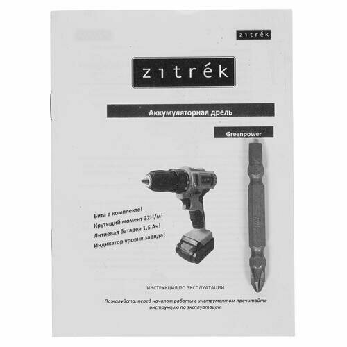 Дрель аккумуляторная Zitrek Greenpower 12-Li (12в, Li-ion аккумулятор 2шт, ЗУ, кейс, бита) .