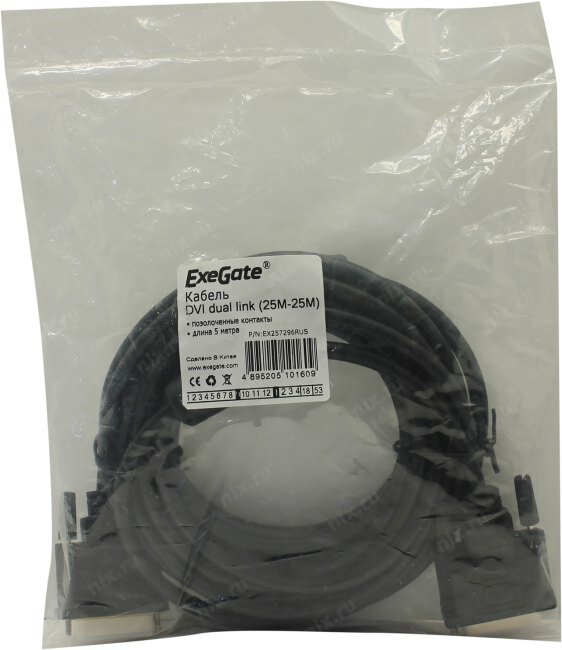 Кабель DVI dual link (25M-25M) 5.0м ExeGate , позолоченные контактыEX257296RUS
