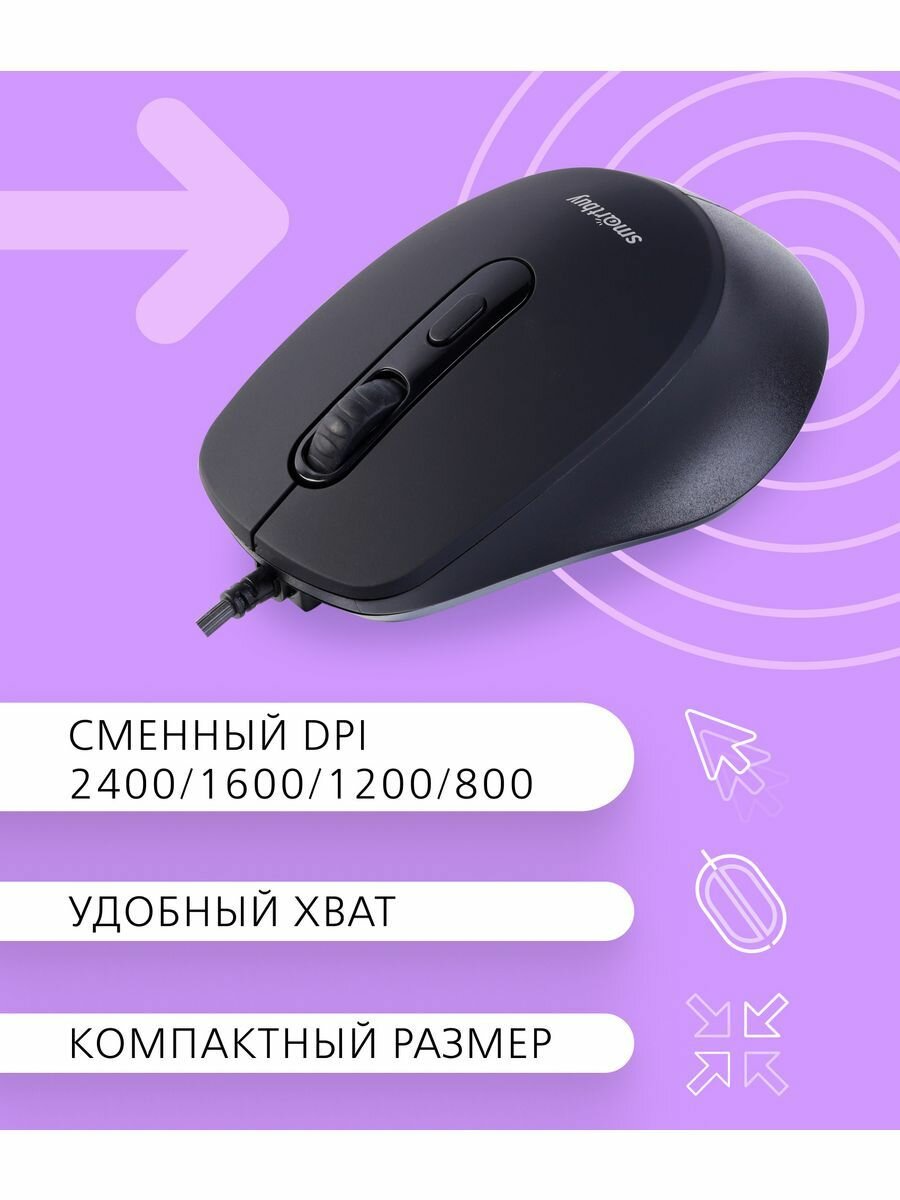 Мышь компьютерная Smartbuy ONE 265-K, проводная, черная (SBM-265-K) / 40