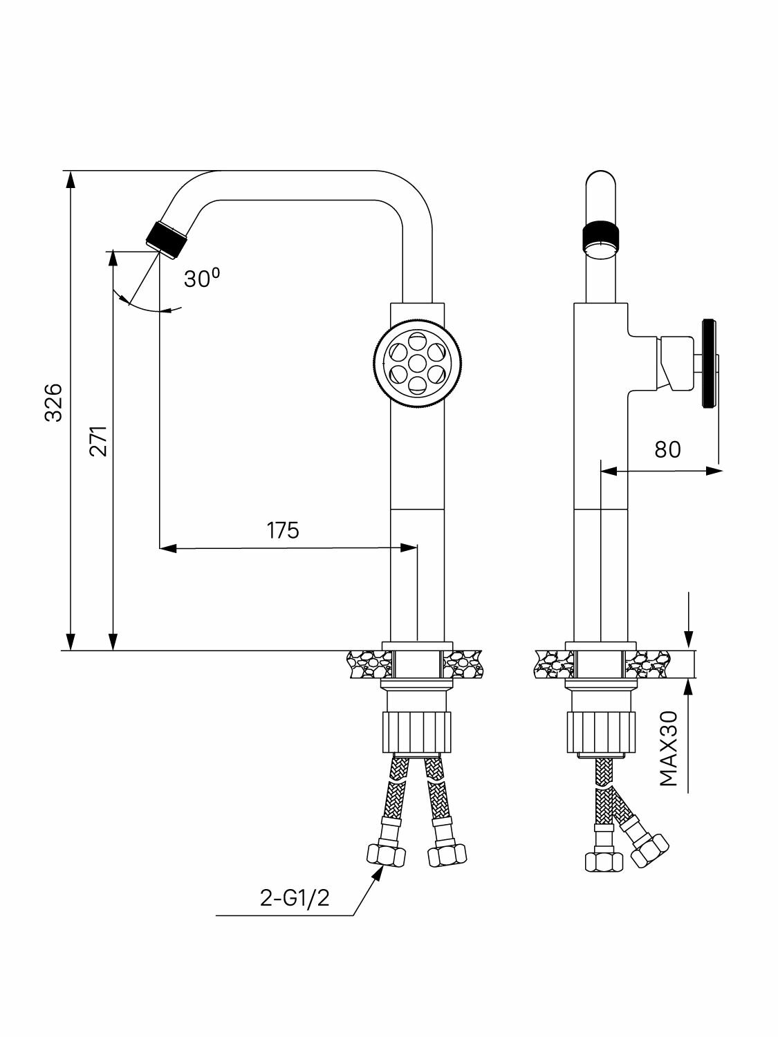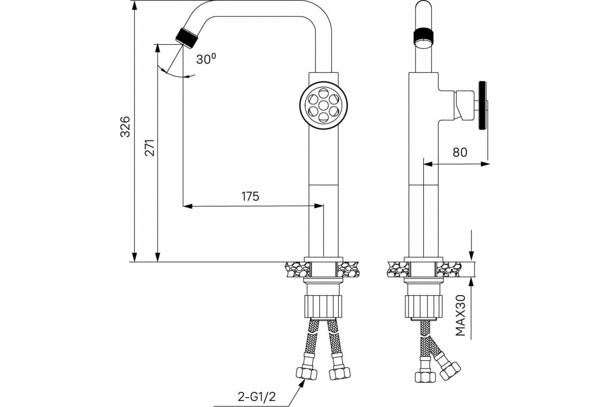 | Высота излива | 271 мм / 326 мм |