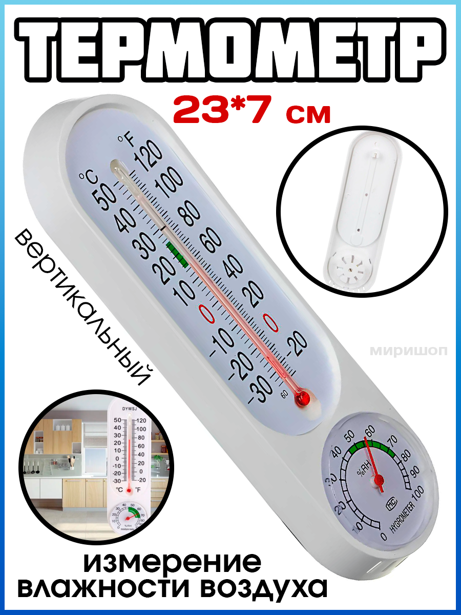 Термометр вертикальный, измерение влажности воздуха, 23x7см