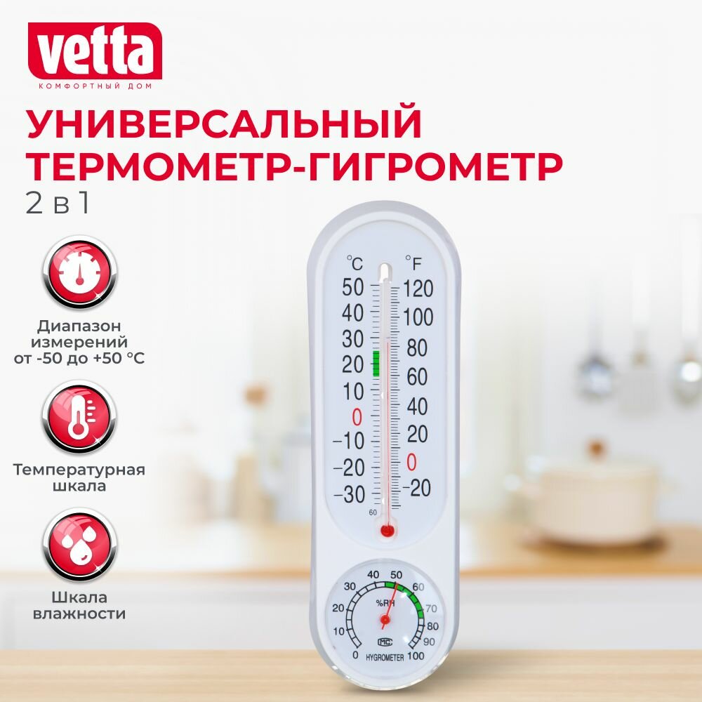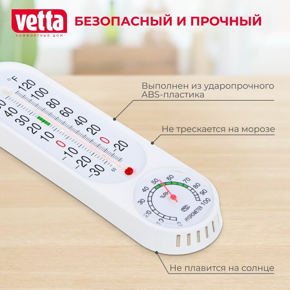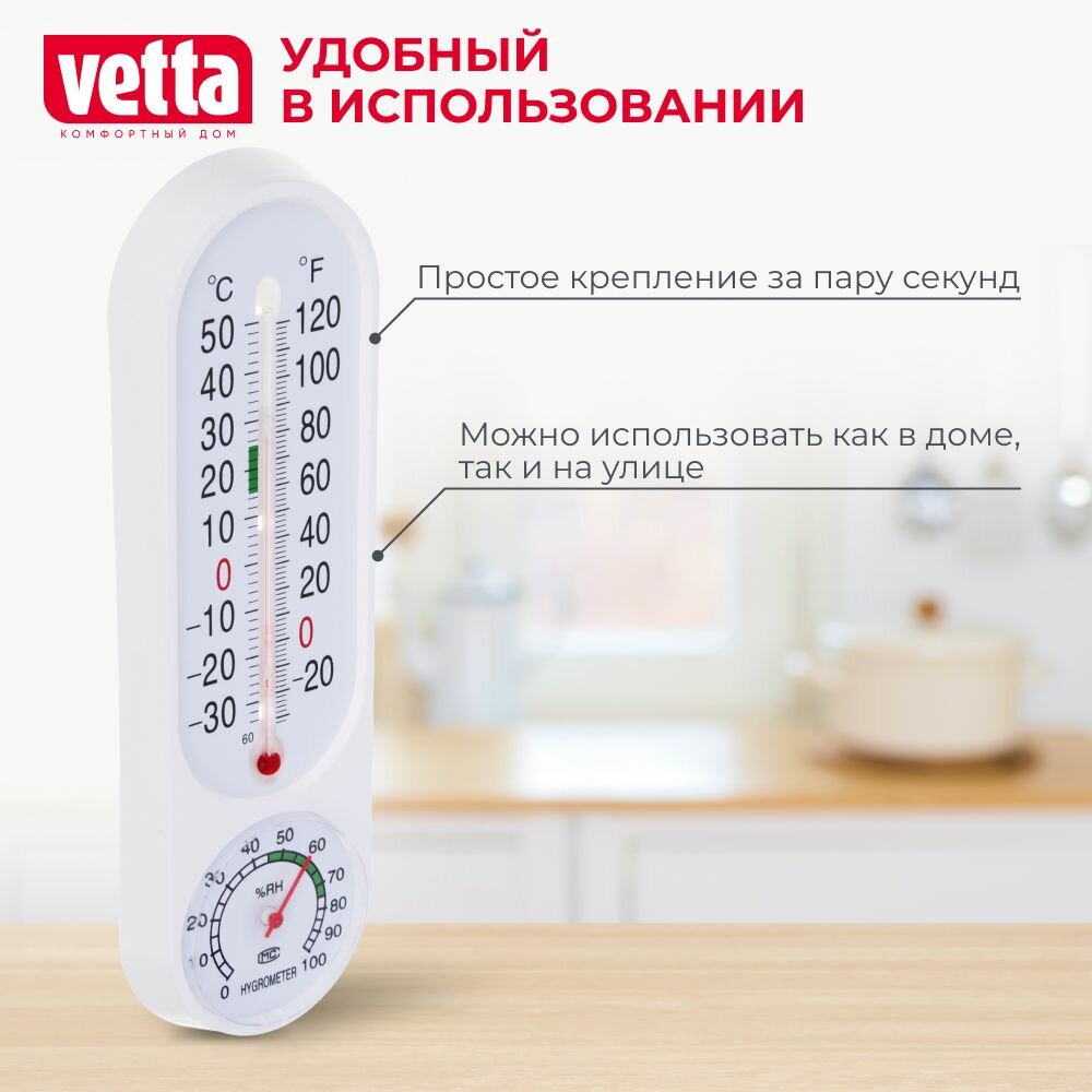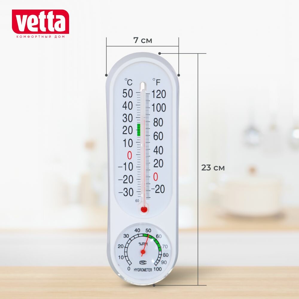 VETTA Термометр вертикальный, измерение влажности воздуха, 23x7см, пластик, блистер