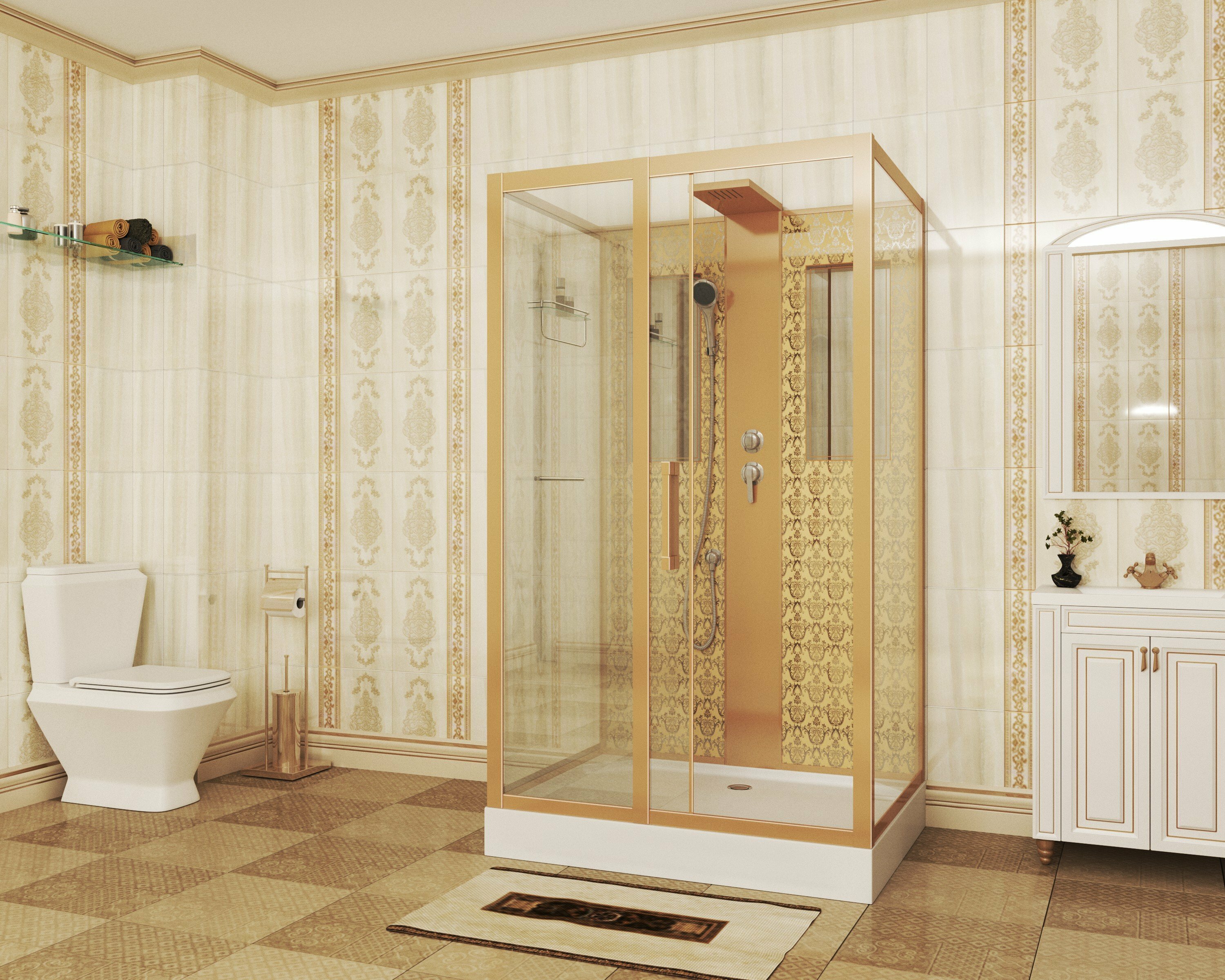 Душевая кабина NG-7711GBK (900x1200х2100) низкий поддон стенки золото без крыши
