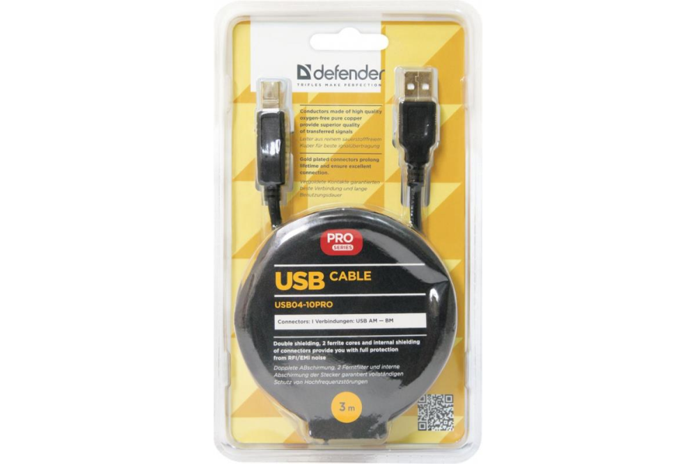 Купить Кабель Defender USB04-10 USB 2,0 AM-USB BM, 3 м, черный (83764)