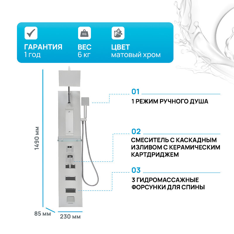 Душевая панель River 08 10000001105 Матовый хром