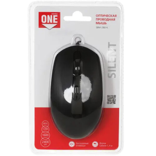 Мышь проводная SmartBuy ONE 280-K, 2400 dpi, USB, черный (SBM-280-K)