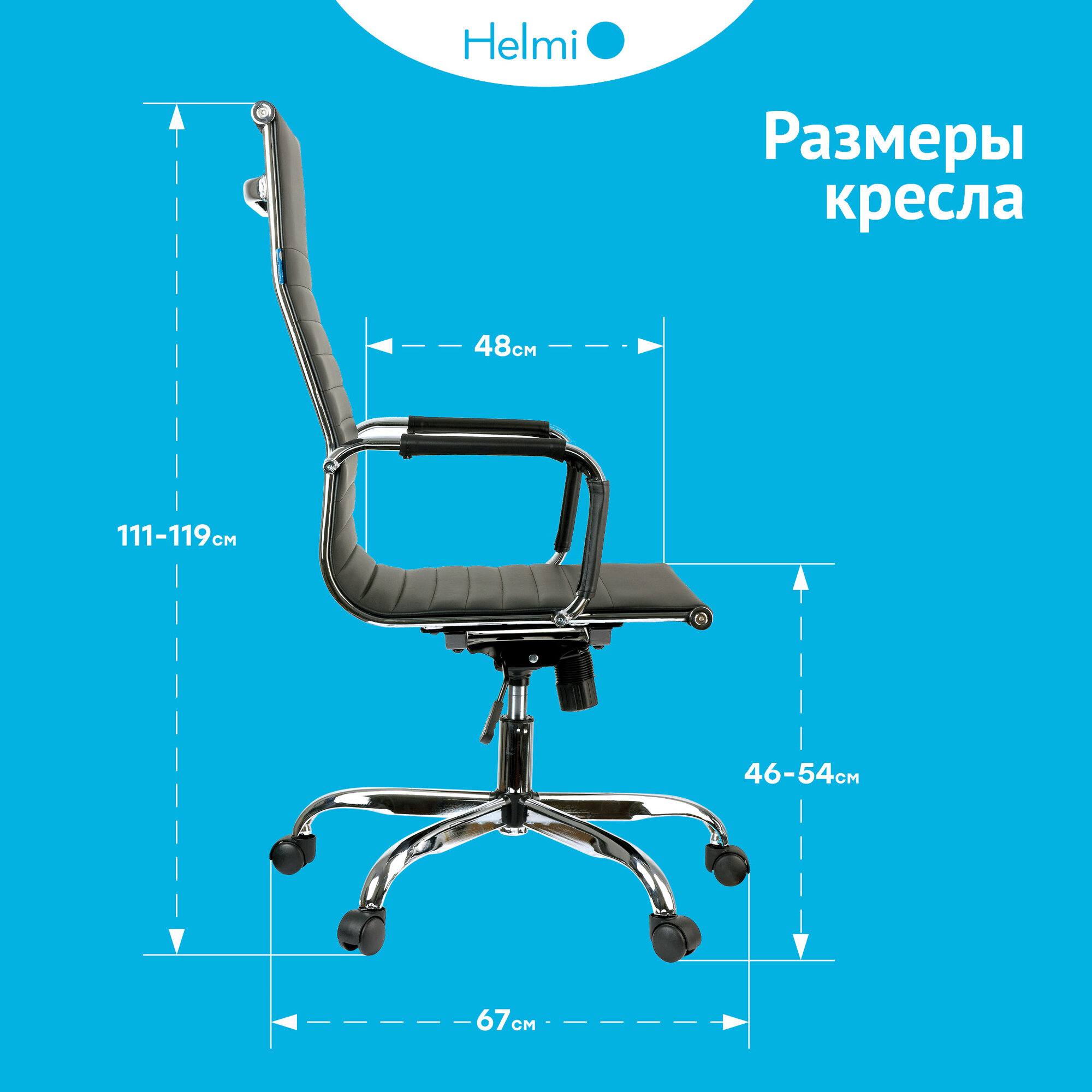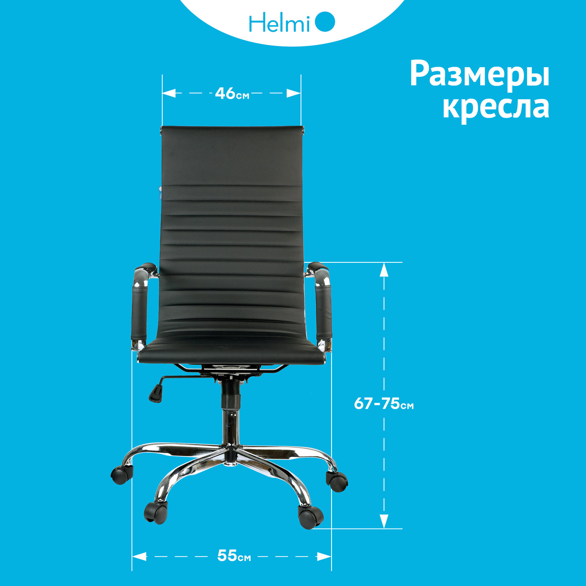 Кресло руководителя Helmi "Slim", экокожа черная, хром (274832)