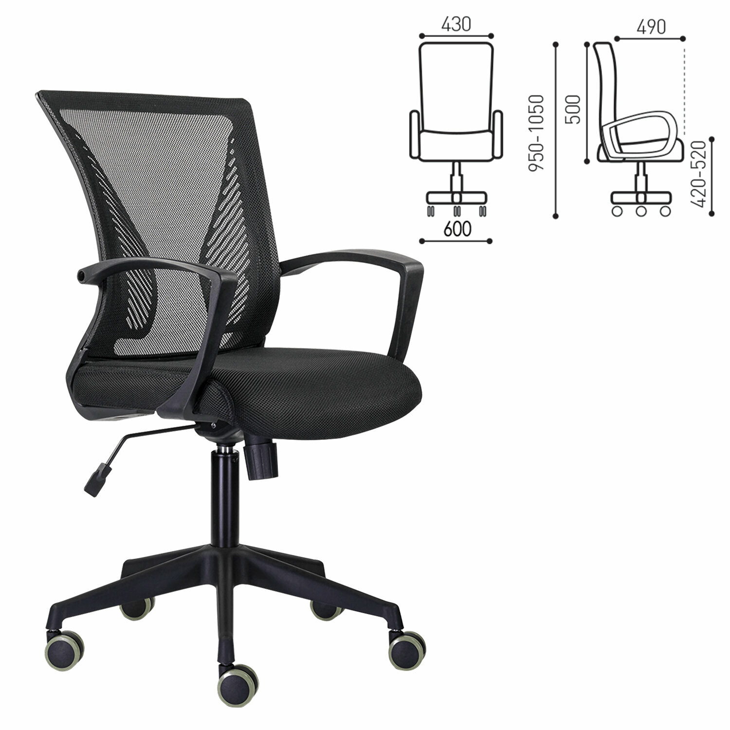 Кресло офисное BRABIX "Wings MG-309", пластик черный, сетка, черное, 532015