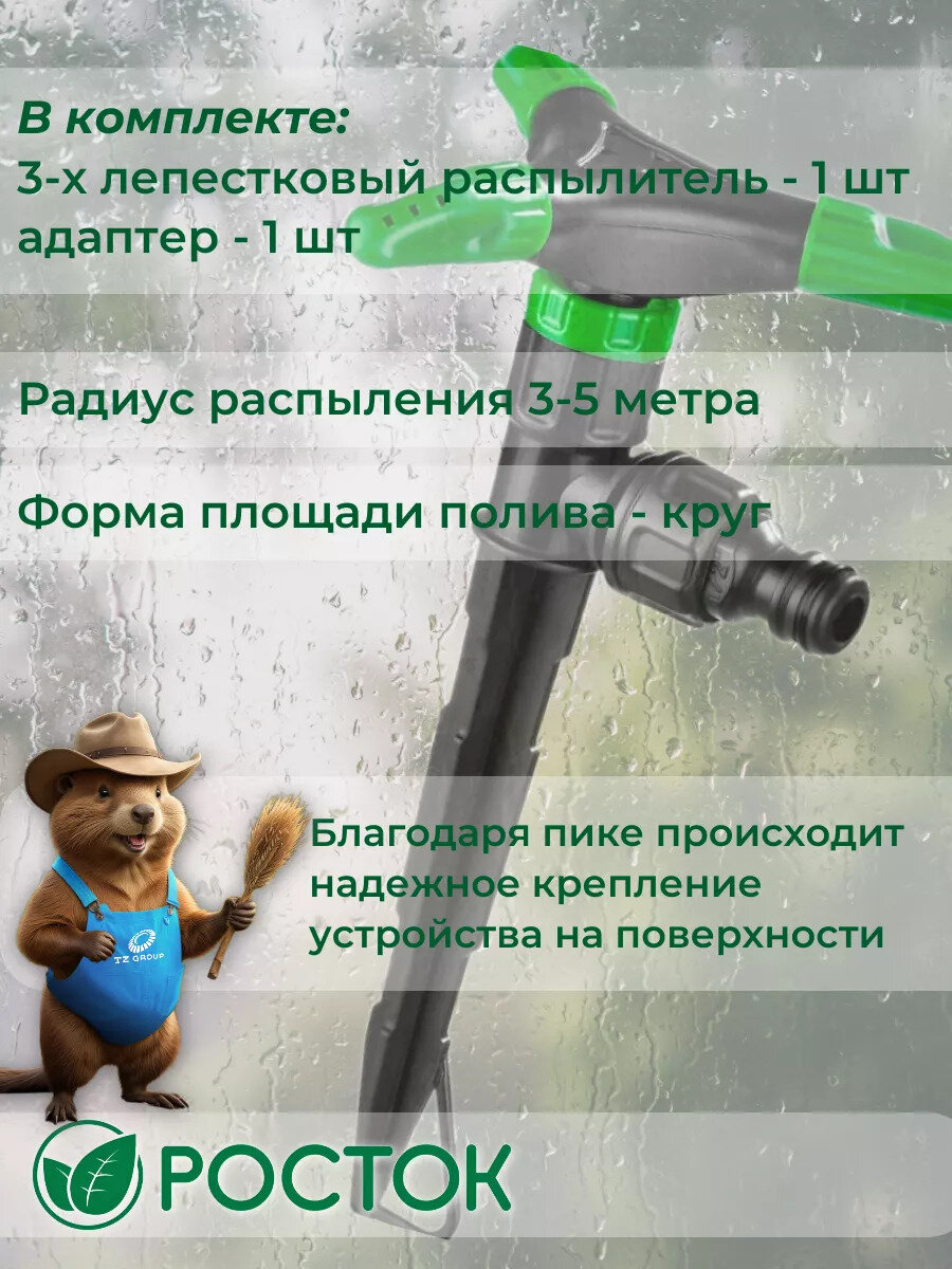 POCTOK РК-3, 19 м2 полив, круговой, 3-х лепестковый, распылитель стационарный, пластиковый