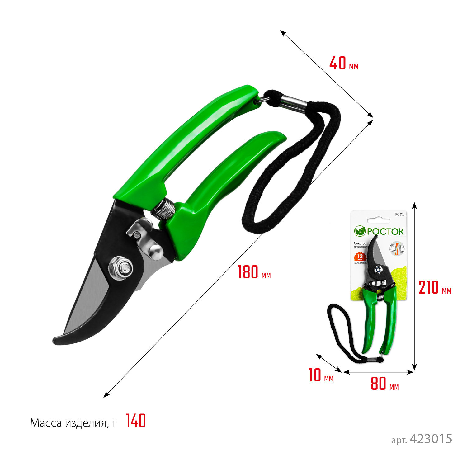 Секатор компактный с пластиковыми рукоятками Росток PC-71 плоскостной, 180 мм 423015 .