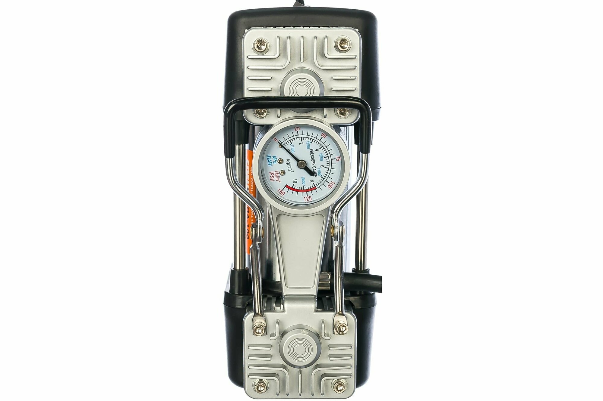 | Минусы: | Слабый для двух поршней. После 1,5 атм. проседает. Слепой манометр. Одноразовый! |