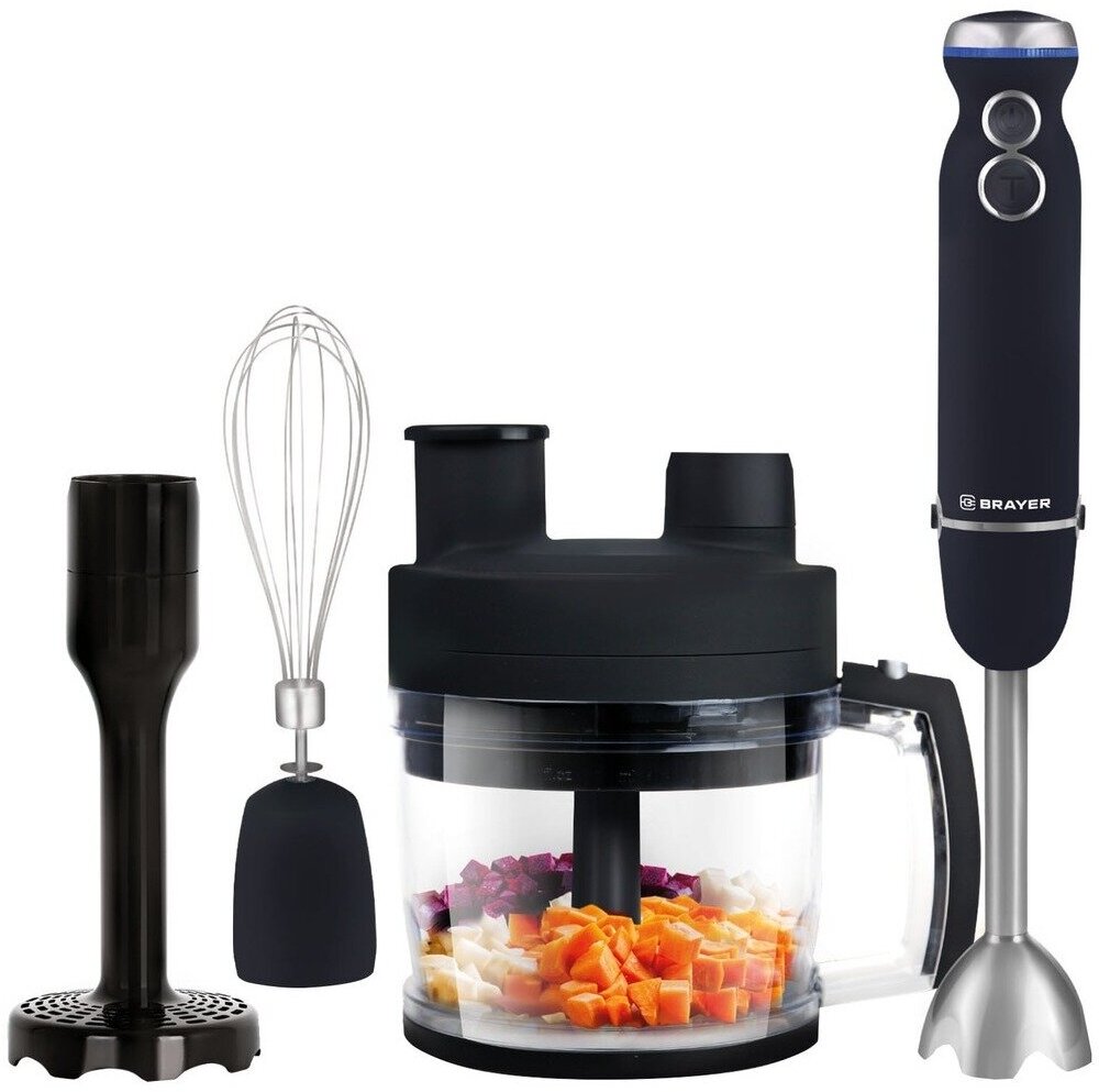 Блендер BRAYER BR1247, 1000 Вт, 5 скоростей, турборежим, измельчитель 500 мл, стакан 600 мл, венчик, черный