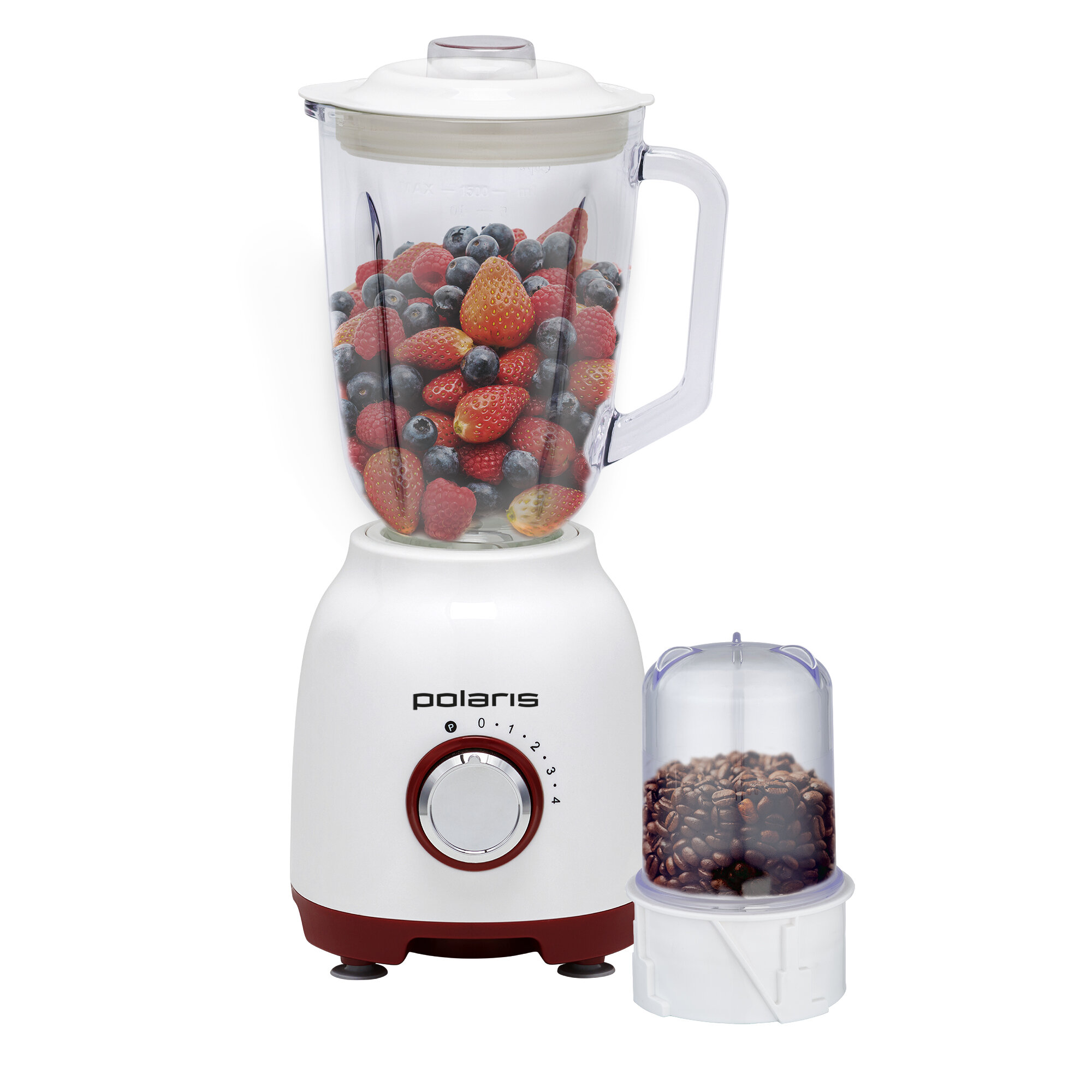 Блендер стационарный Polaris PTB 0821G, белый/красный