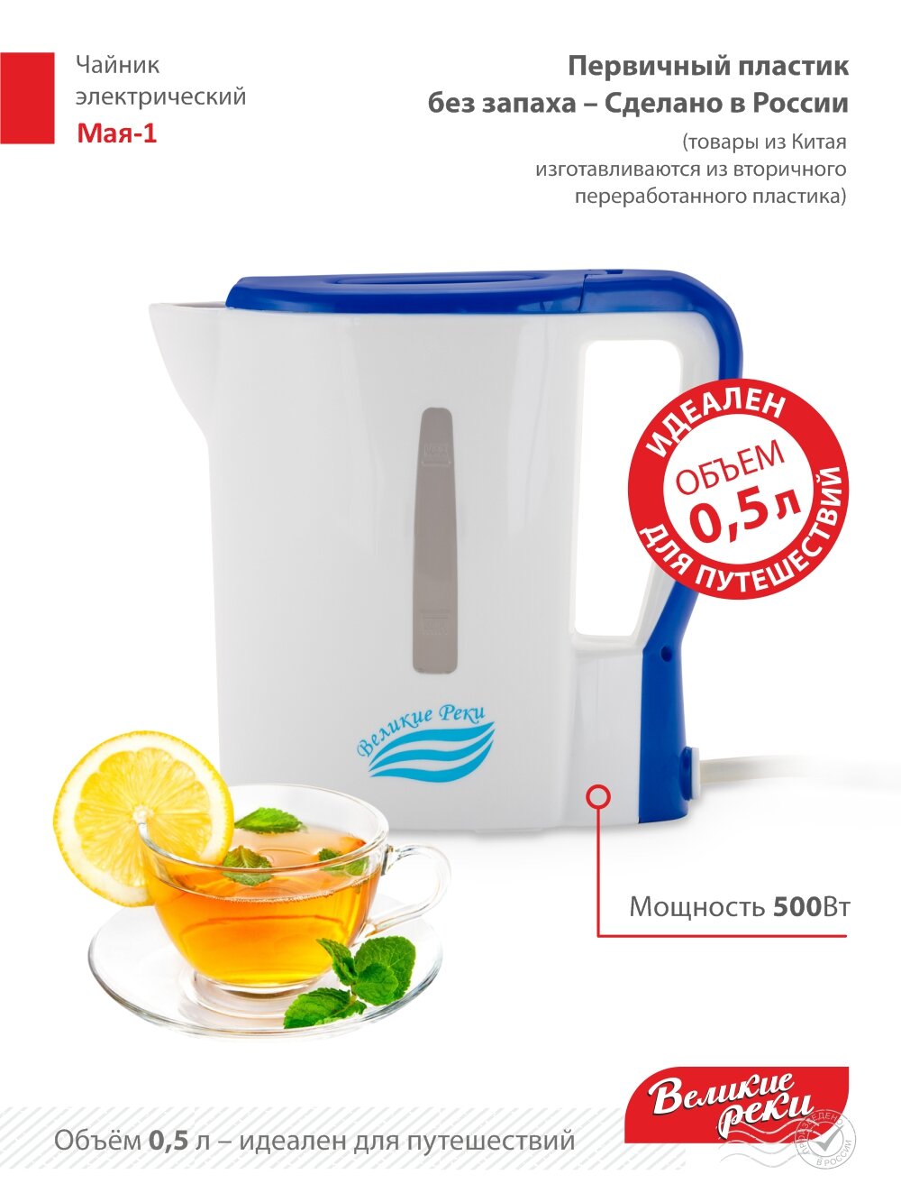 Чайник электрический Великие Реки Мая-1 белый, 0,5 л, пластик, 500 Вт