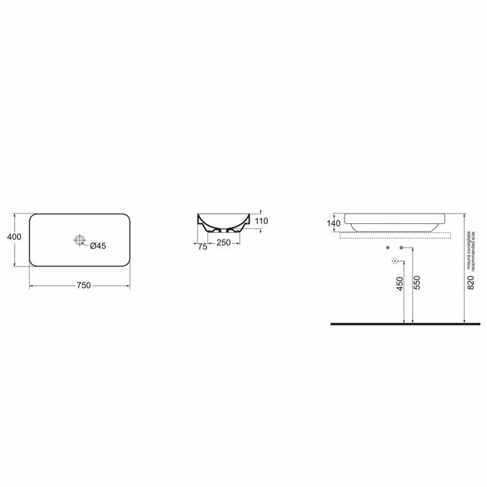 Накладная раковина в ванную Azzurra Elegance ELLG075400S0BI/(ESO75 bi)*0
