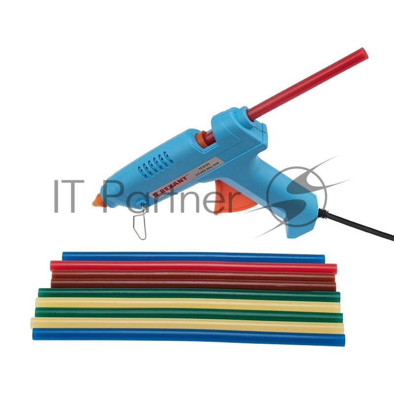 Пистолет клеевой REXANT, 15 Вт, Ø7 мм + набор цветных стержней 12 шт, блистер