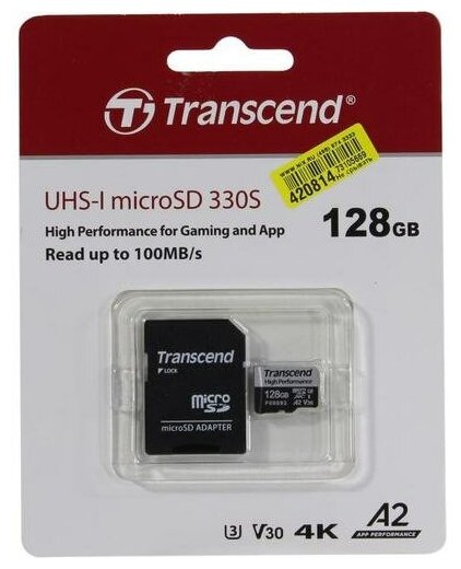 Карта памяти 128 ГБ microSDXC Transcend 330S TS128GUSD330S UHS-I U3 A2 V30