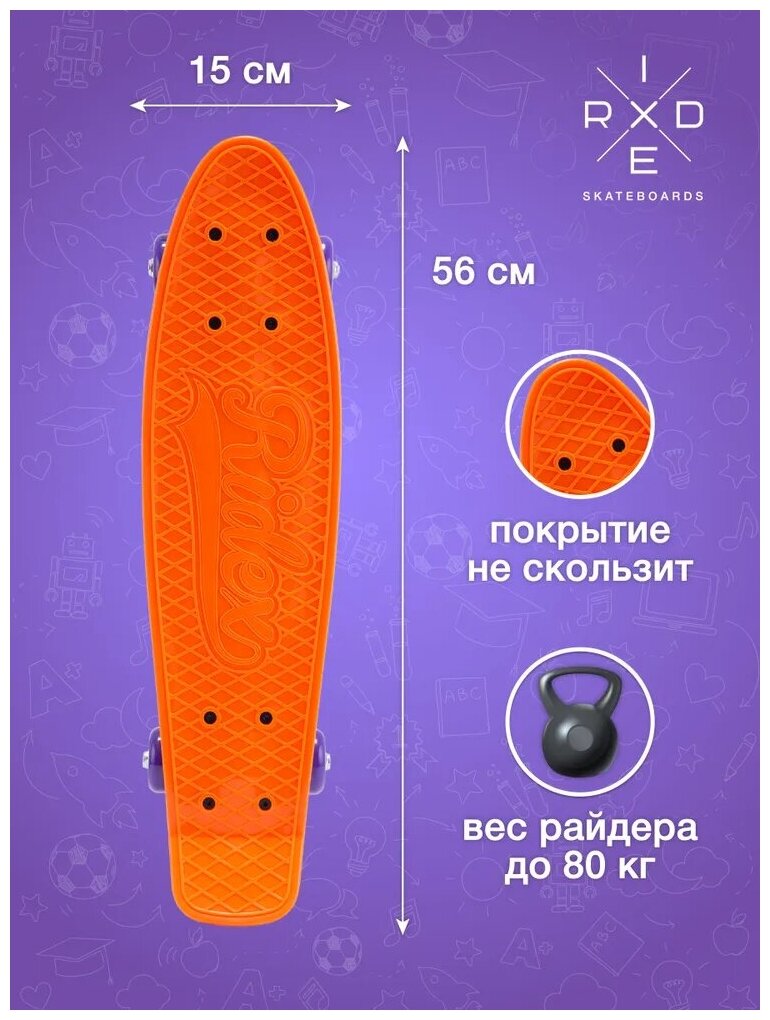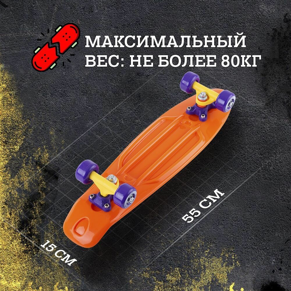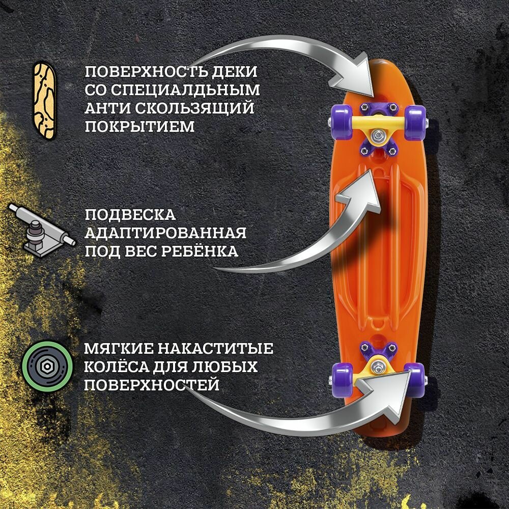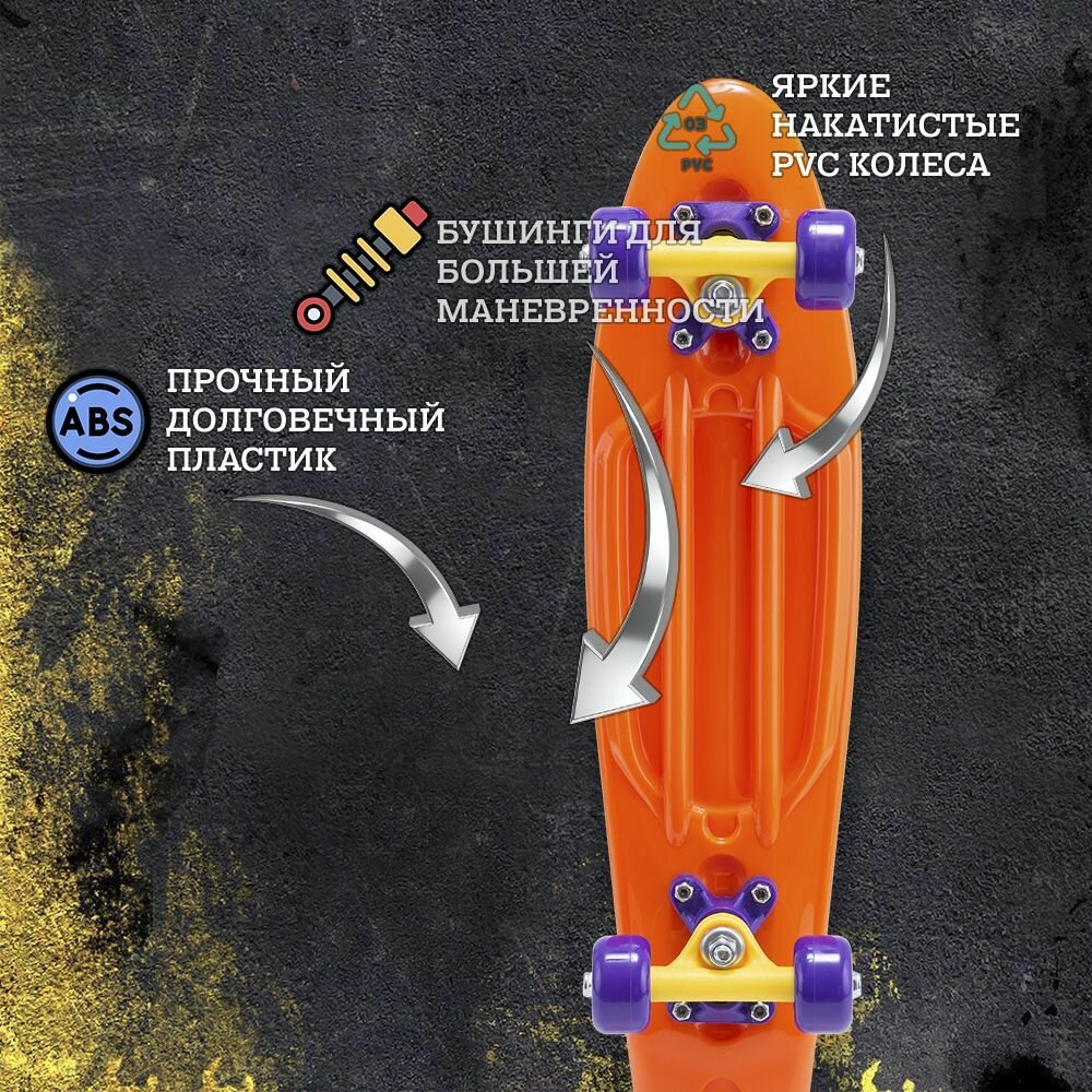 Круизер пластиковый для детей и подростков. Пенни борд. Pumpkin 22''x6''. Ridex. УТ-00019101 интересное: