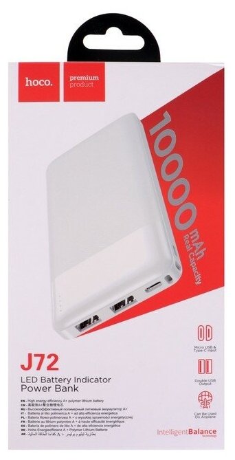 Внешний аккумулятор Hoco J72, белый (10000mAh, 2xUSB, 2A)