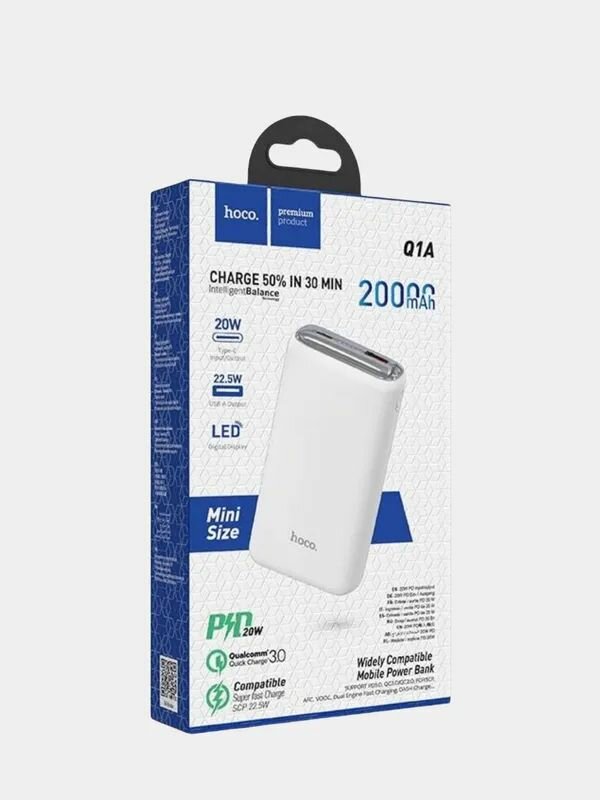 Купить Портативное ЗУ HOCO Power Bank Q1A 20000 mAh, PD 20W + QC3.0, белый (28)