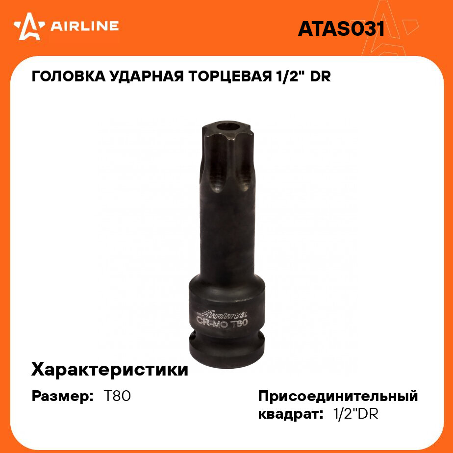 Головка ударная торцевая 1/2" DR внешний TORX T80 L=78 мм ATAS031 AIRLINE интересное: