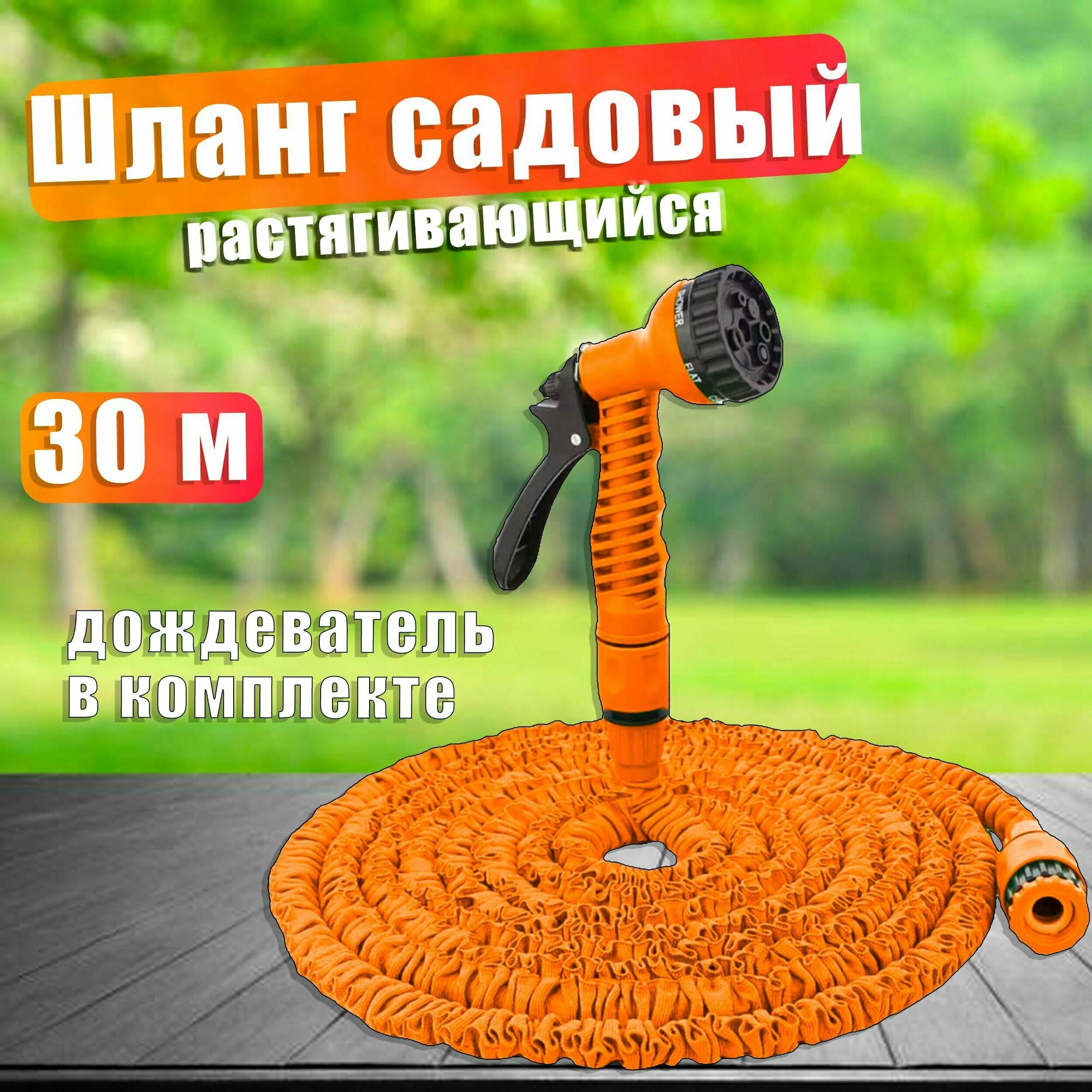Набор для полива с растягивающимся шлангом 30м Вихрь, 73/7/2/27