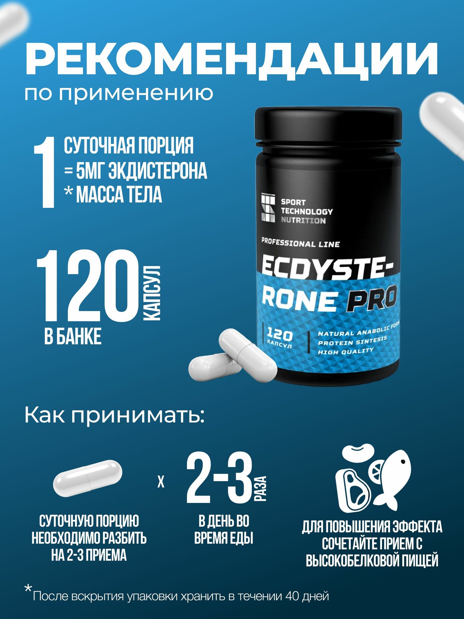 Купить Повышение тестостерона, либидо и гормона роста Экдистерон про SPORTTECH, 120 капсул