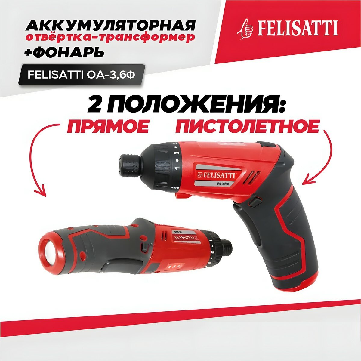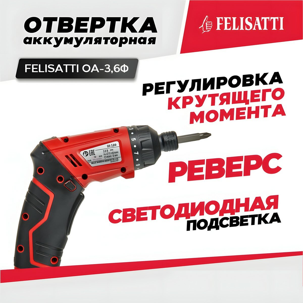 Аккумуляторная отвертка Felisatti ОА-3.6Ф (609.5.1.00) красный/черный