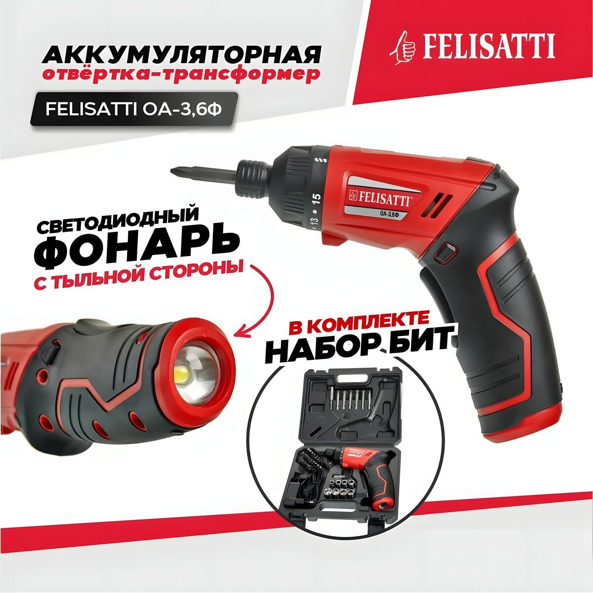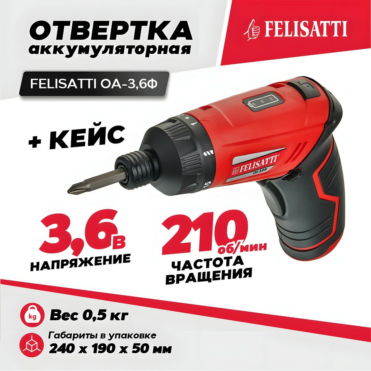 Аккумуляторная отвертка Felisatti ОА-3,6Ф (кейс, Li-Ion)