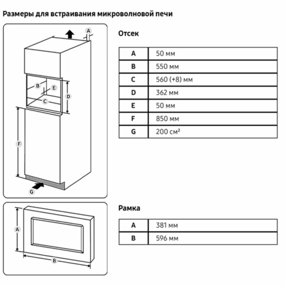 Встраиваемая микроволновая печь Samsung Ms23a7013at/bw .