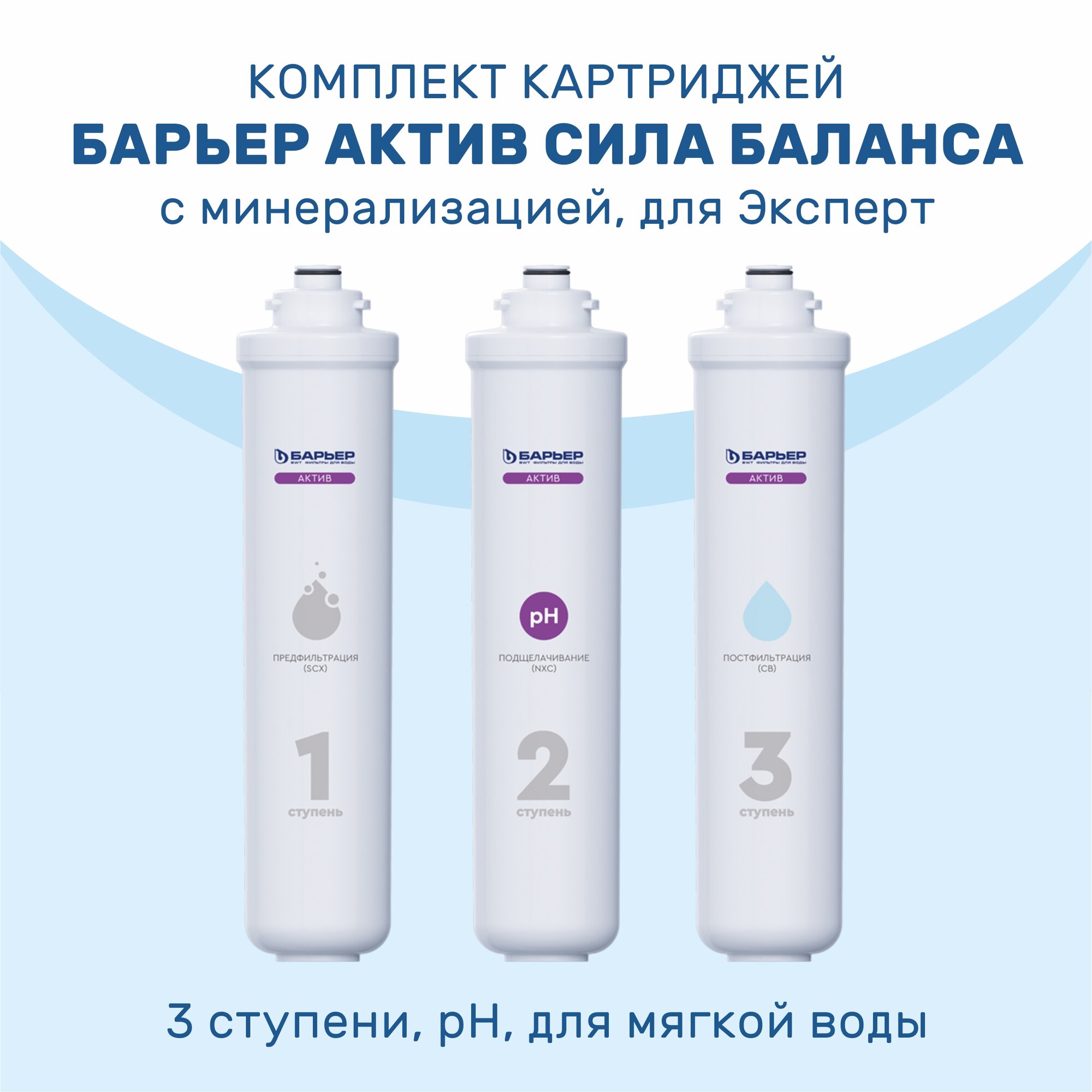Фильтры сменные барьер актив Сила Баланса ресурс 1000 л. повышает уровень pH, комплект картриджей для фильтра под мойку